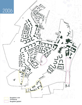 Hier wohnt man in Norderstedt-Mitte: Die schematischen Darstellungen zeigen sehr vereinfacht die zunehmende Bebauung in Norderstedt-Mitte. Gut zu erkennen ist, dass zunächst der Geschosswohnungsbau vorangetrieben wird.
